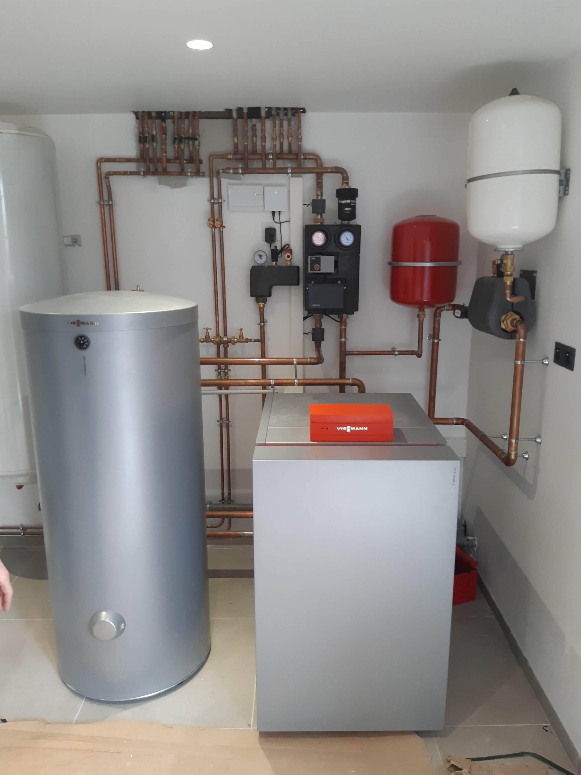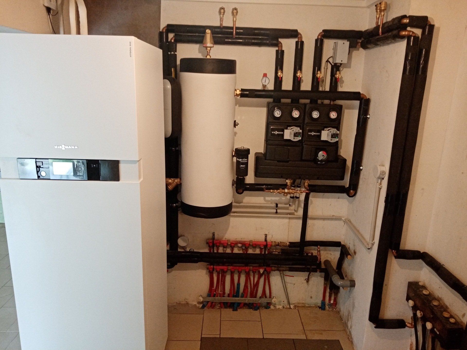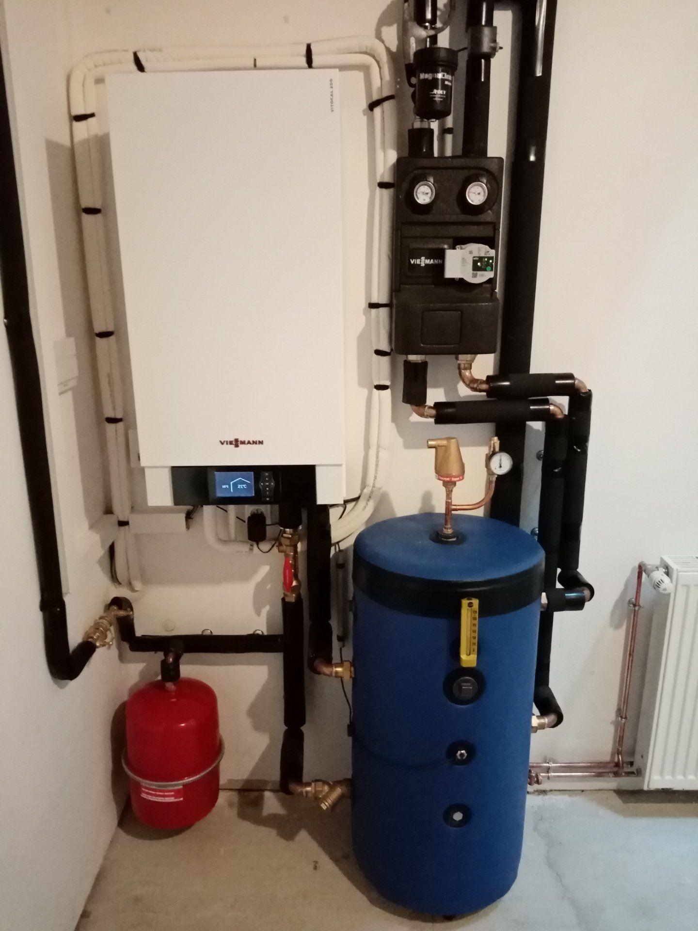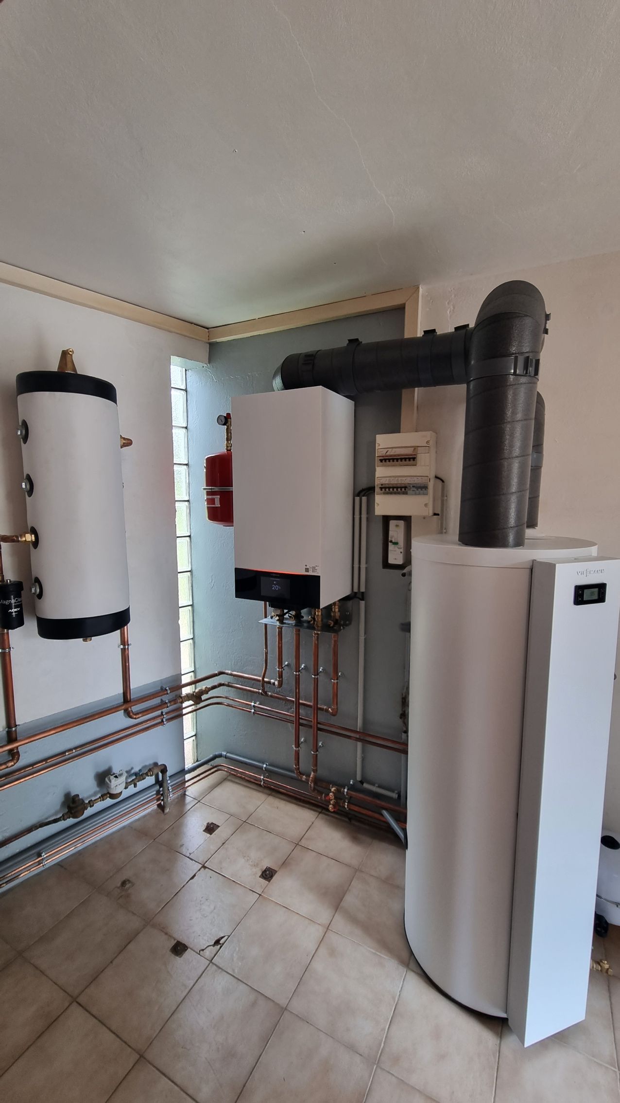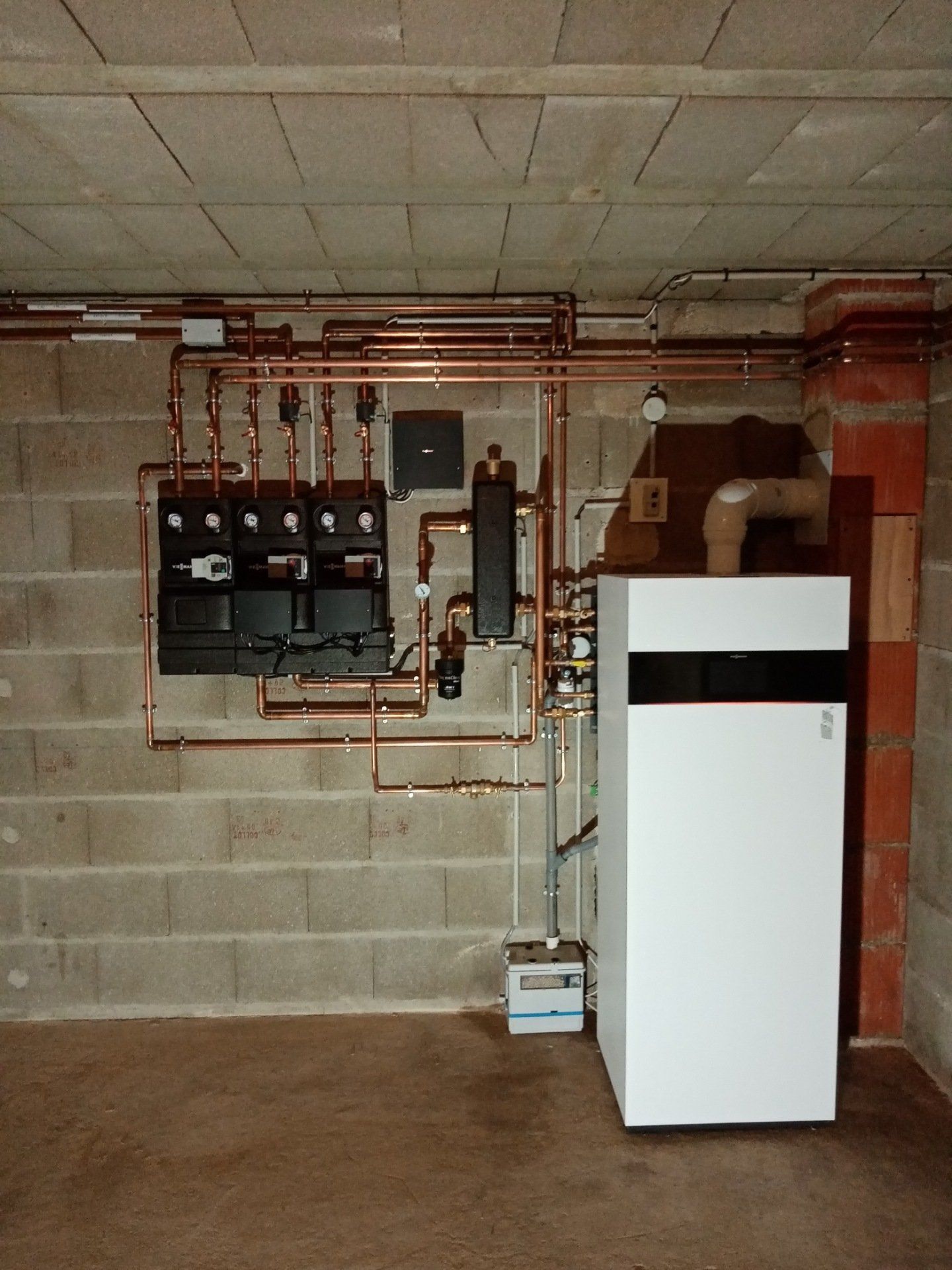 Installation en remplacement d'une chaudière fioul sur réseau plancher chauffant et radiateurs, avec production d'eau chaude intégrée