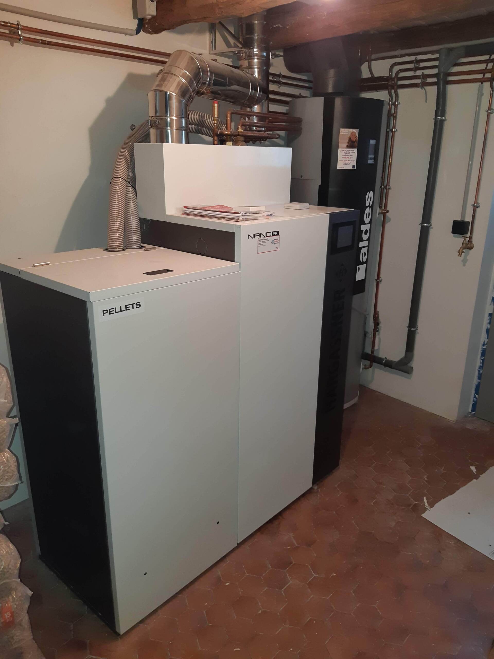 Installation en remplacement d'une ancienne chaudière bois et gaz sur un réseau radiateurs