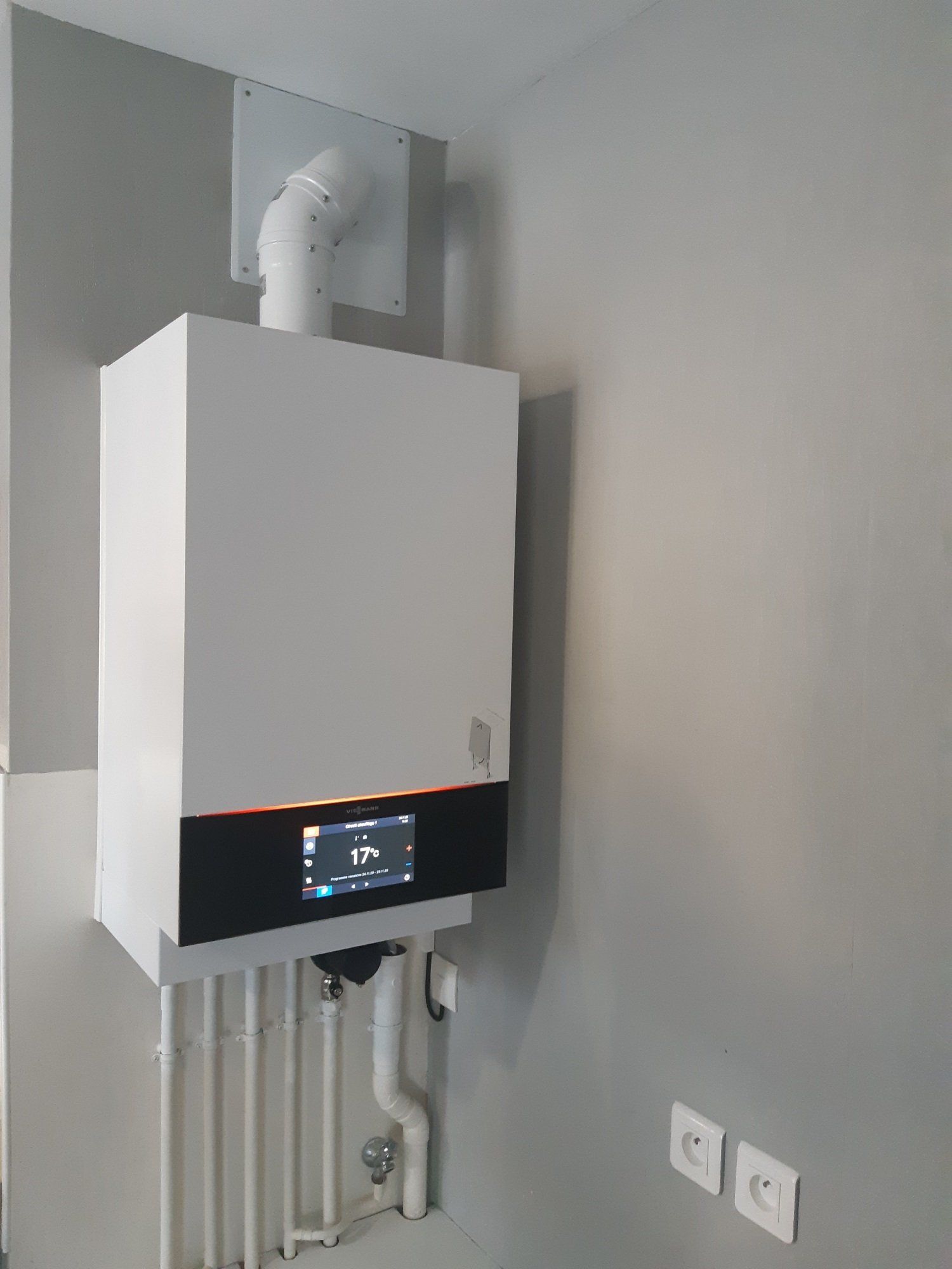 Chaudière gaz condensation murale avec production d'eau chaude instantannée, sur un réseau radiateur d'une maison moyenne